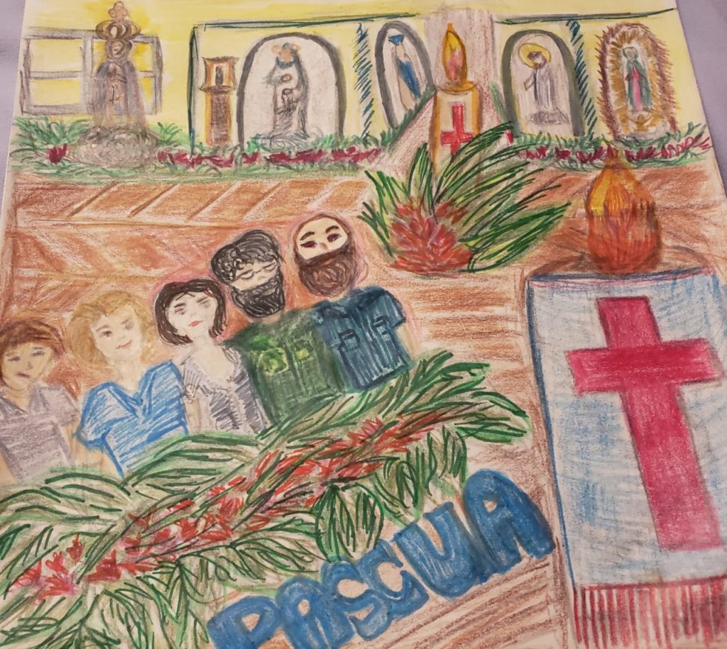 Hace días, Liliana me sorprendió al enviarme por WhatsApp un dibujo inspirado en la escena de Jesús entrando a Jerusalén durante el Domingo de Ramos. En el mismo, con trazos finos y colores suaves, se recrea el momento con mucho realismo. Ella me dijo que lo hizo mientras el Santísimo estaba pasando por Panamá en el helicóptero que transportaba a monseñor José Domingo Ulloa. Me sentí feliz de ver que Liliana estaba renaciendo en medio del dolor. Tuvimos un intercambio de mensajes en el que me contó que, desde la muerte de Manuel, había sentido la presencia de su mamá. Sentía que ella la estaba acompañando en esas horas difíciles y que por eso había vuelto a pintar.